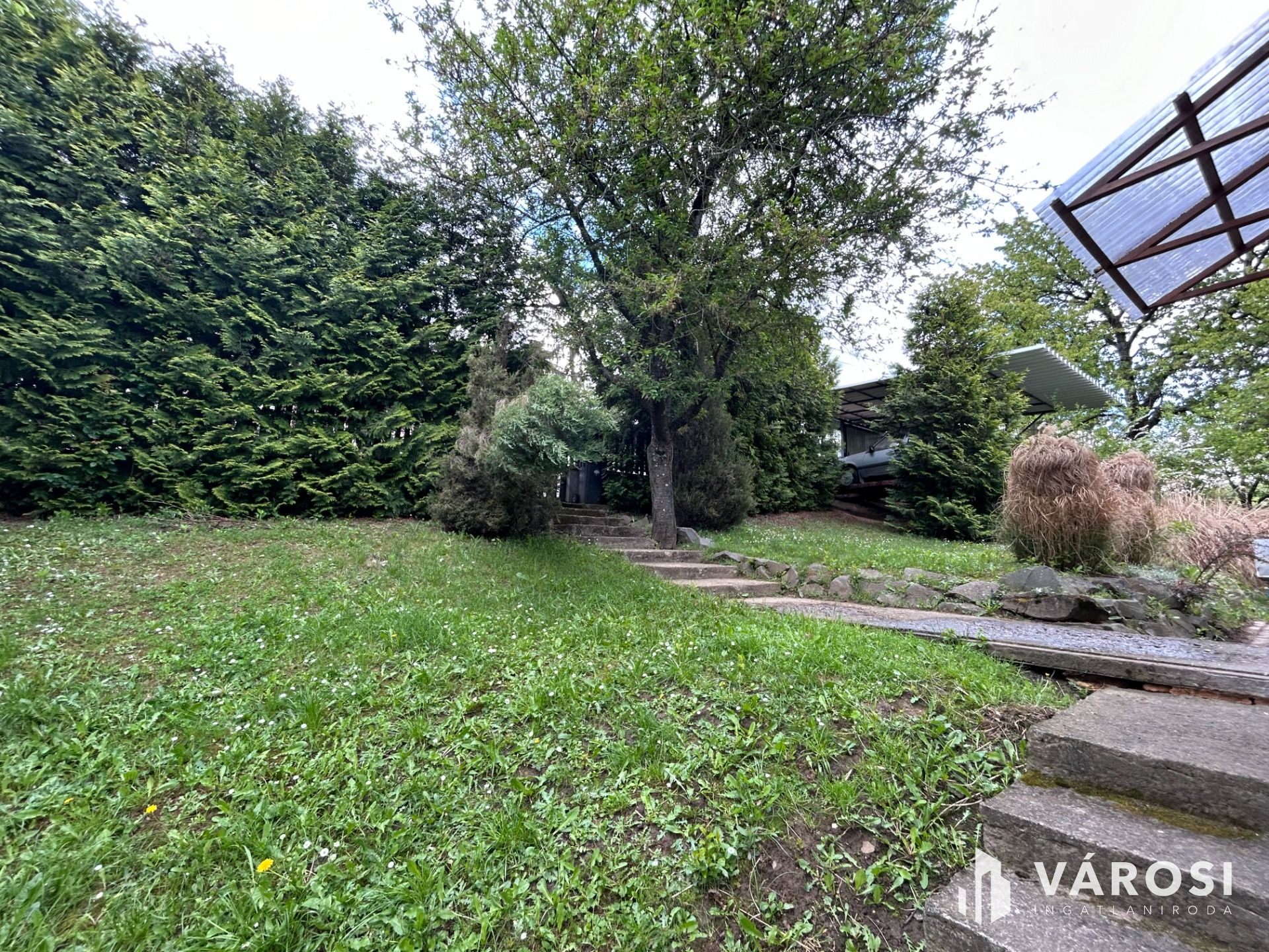 Az ingatlanhoz tartozó telek 732 nm nagyságú, körbekerített. Az udvaron 2 beállós garázs és fúrt kút található.