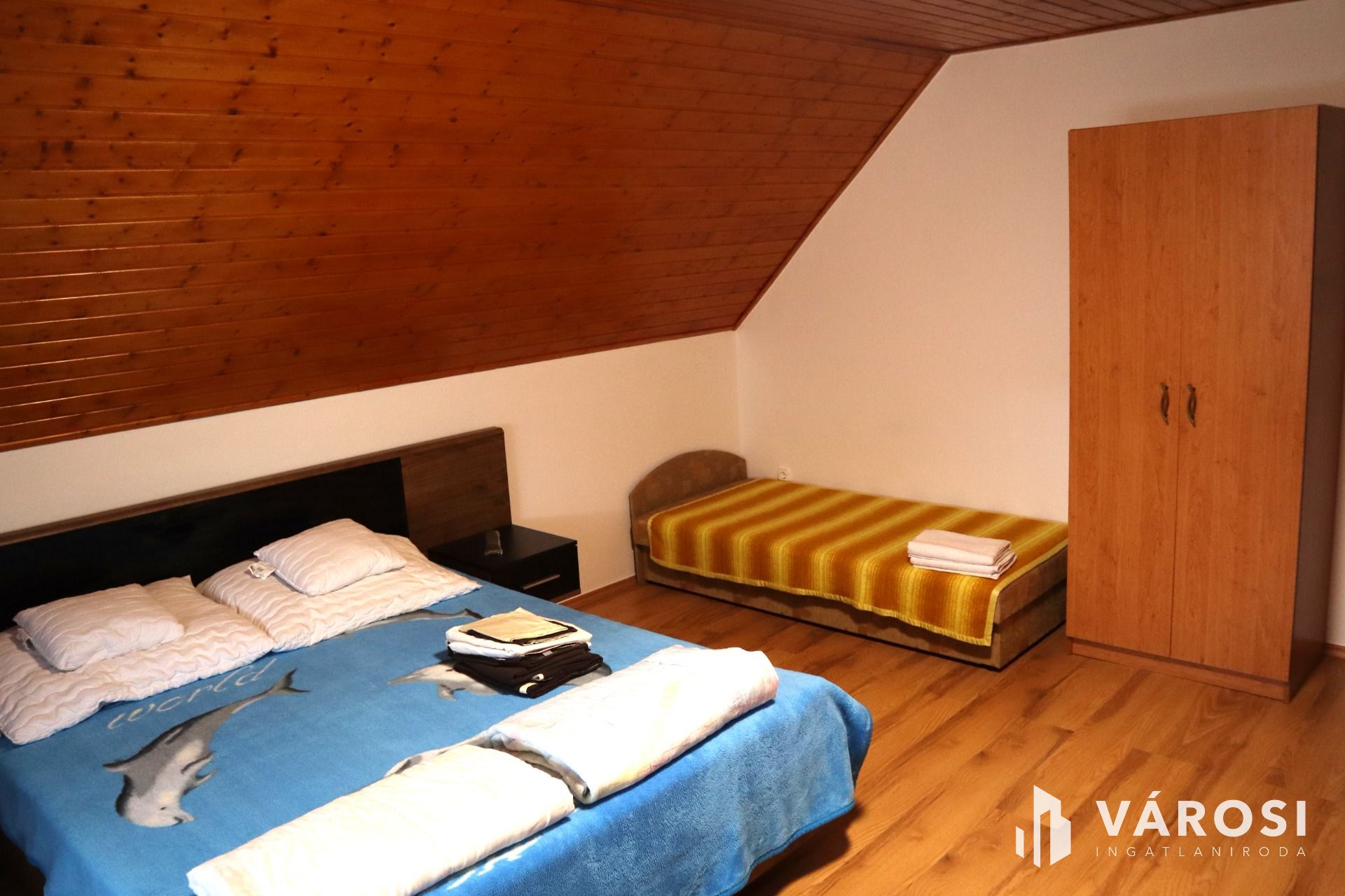 A 2004-ben épült két szintes, szigetelt tégla építésű épület hasznos alapterülete 400 m², amely egy 800 m²-es önálló parkosított telken helyezkedik el. Az ingatlan kiváló állapotban van, a földszinten két 100 m²-es apartman (egyenként 2 hálószoba, és egy nagy nappali) az emelten pedig szintén két 100 m²-es 3 szobás tágas apartman várja a pihenni váró vendégeket. Minden egységhez tartozik egy konyha, és egy zuhanyzós fürdőszoba is.