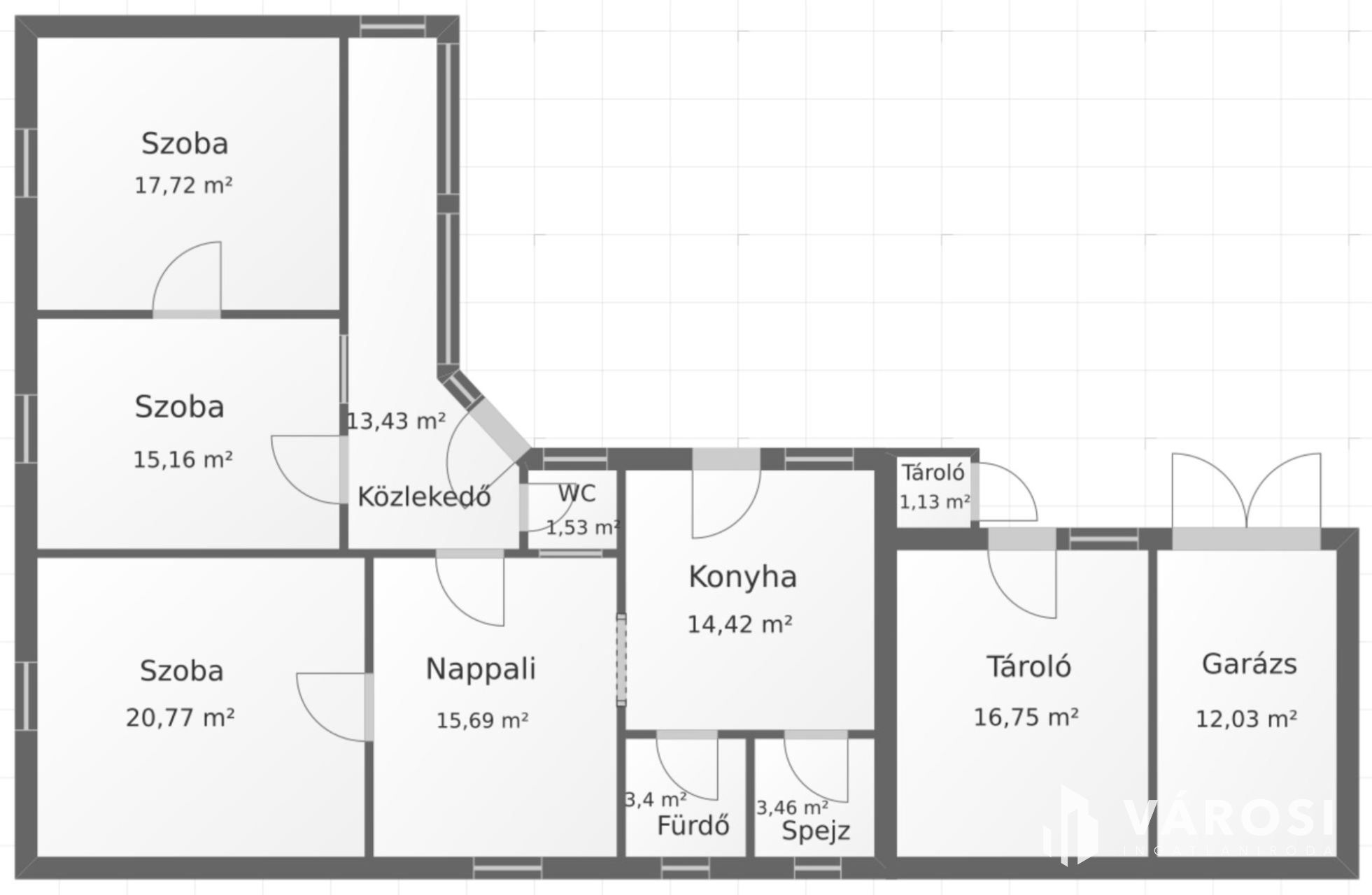 Ez a 105 m²-es, egyszintes, családi ház ideális lehetőséget kínál mindazok számára, akik nyugodt környezetben, mégis kiváló közlekedési feltételek mellett szeretnének élni. Az ingatlanban három tágas szoba, egy nappali, egy spejz egy konyha étkezővel, valamint külön fürdő és WC található.