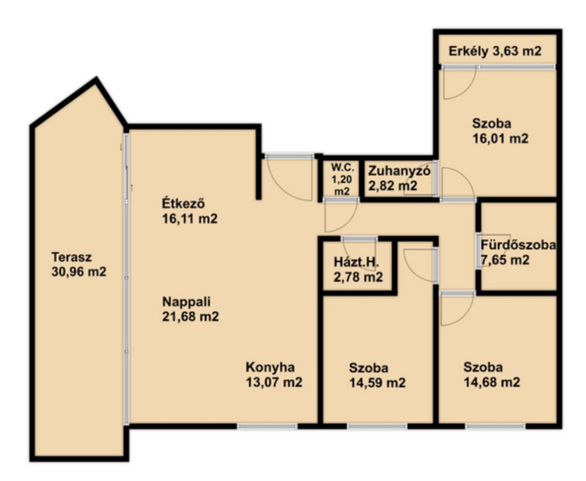 - Hasznos alapterület 117,52 m2+Terasz 34,59 m2