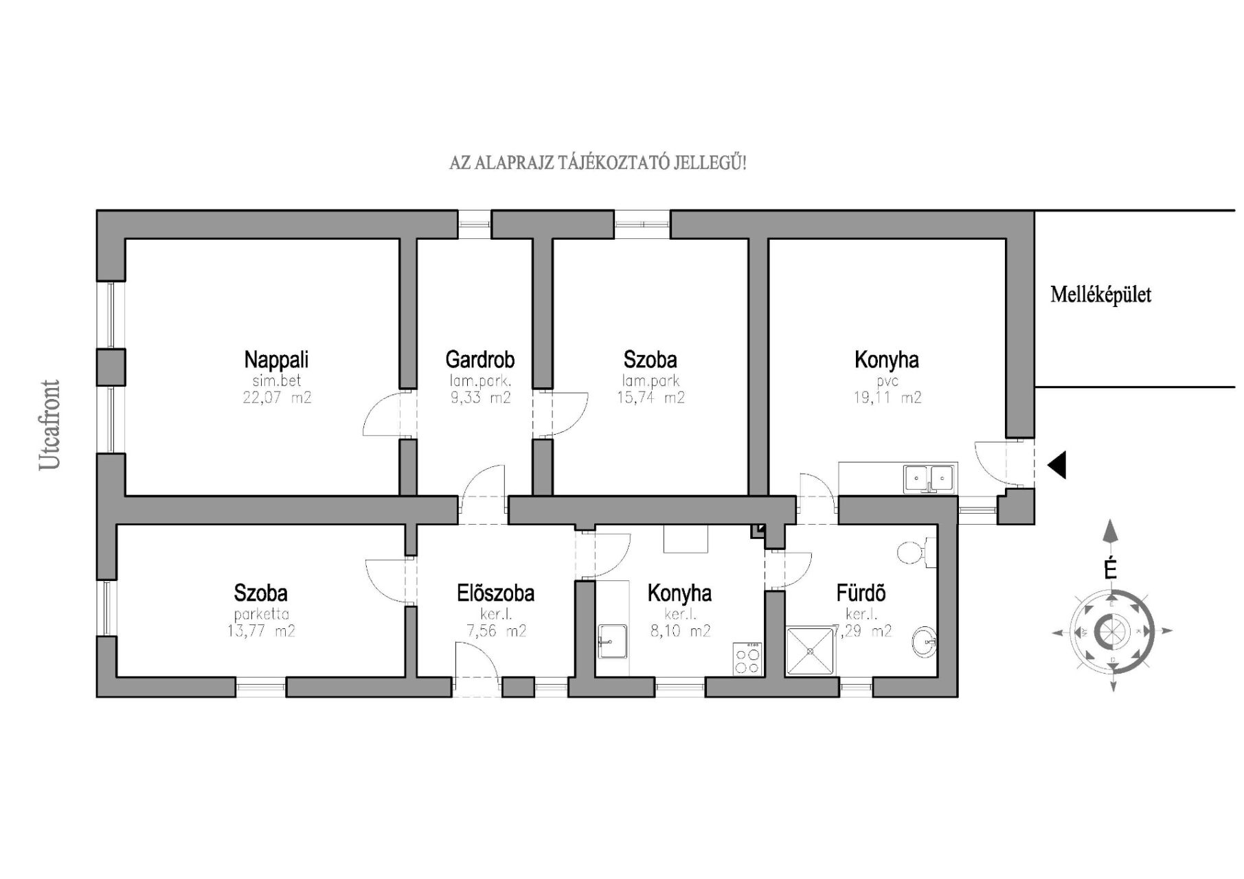- Nappali: ~22,00 m2