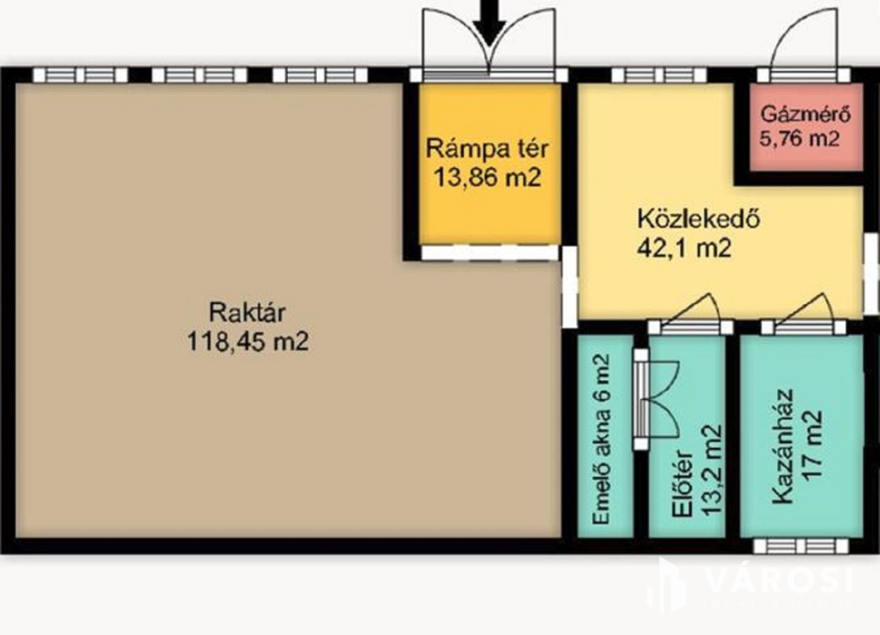 Az utcáról egy rámpán meg lehet közelíteni a terület legnagyobb raktározásra vagy gyártásra alkalmas, földszinti helyiségét személyautóval vagy kisebb méretű kisteherautóval is, így az áruszállítás rugalmassá tehető.