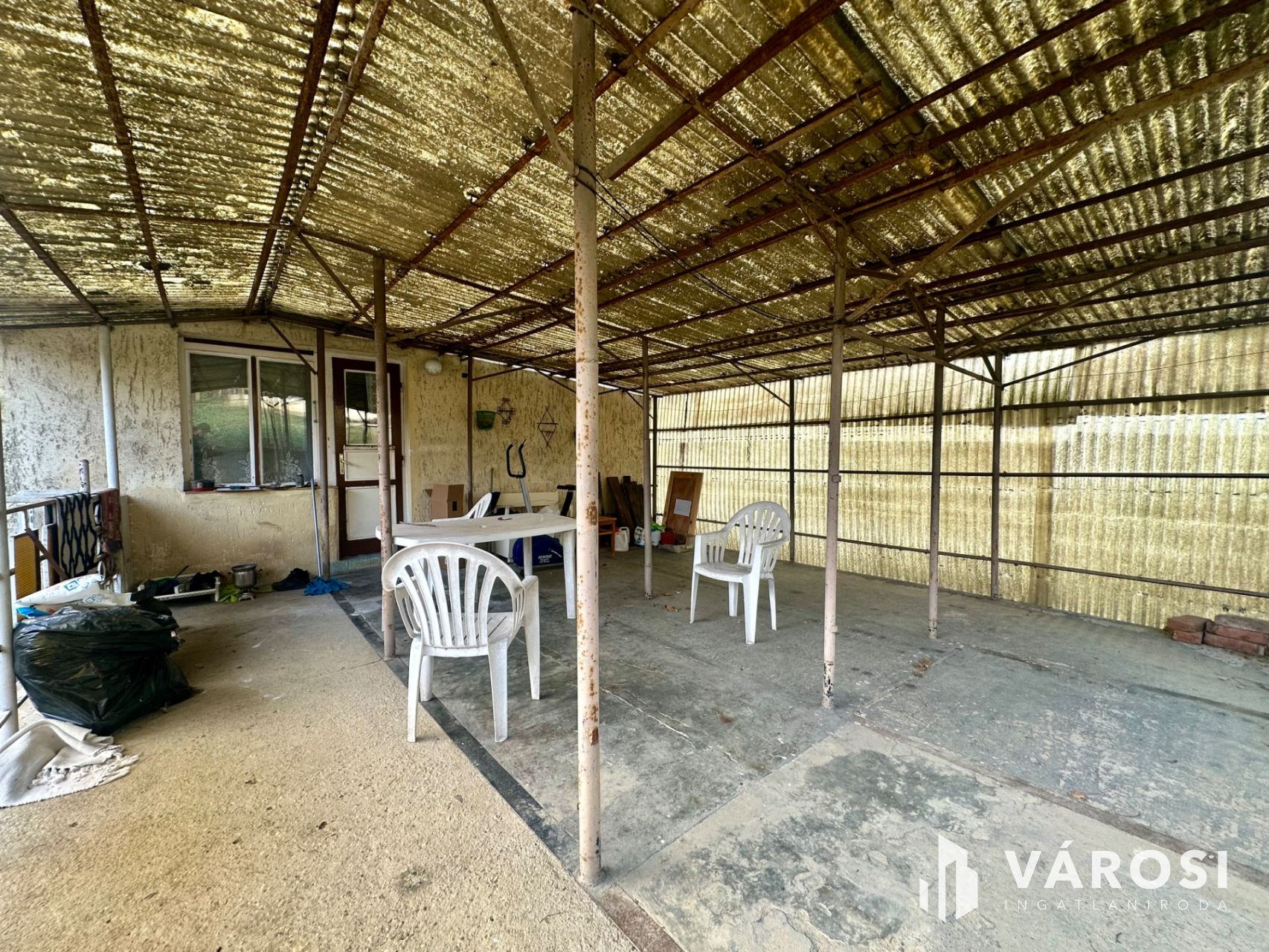 Az ingatlanhoz tartozó telek 1091 nm nagyságú, körbekerített, lankás, két utcára határos, területén gazdálkodásra alkalmas melléképületek találhatók.
