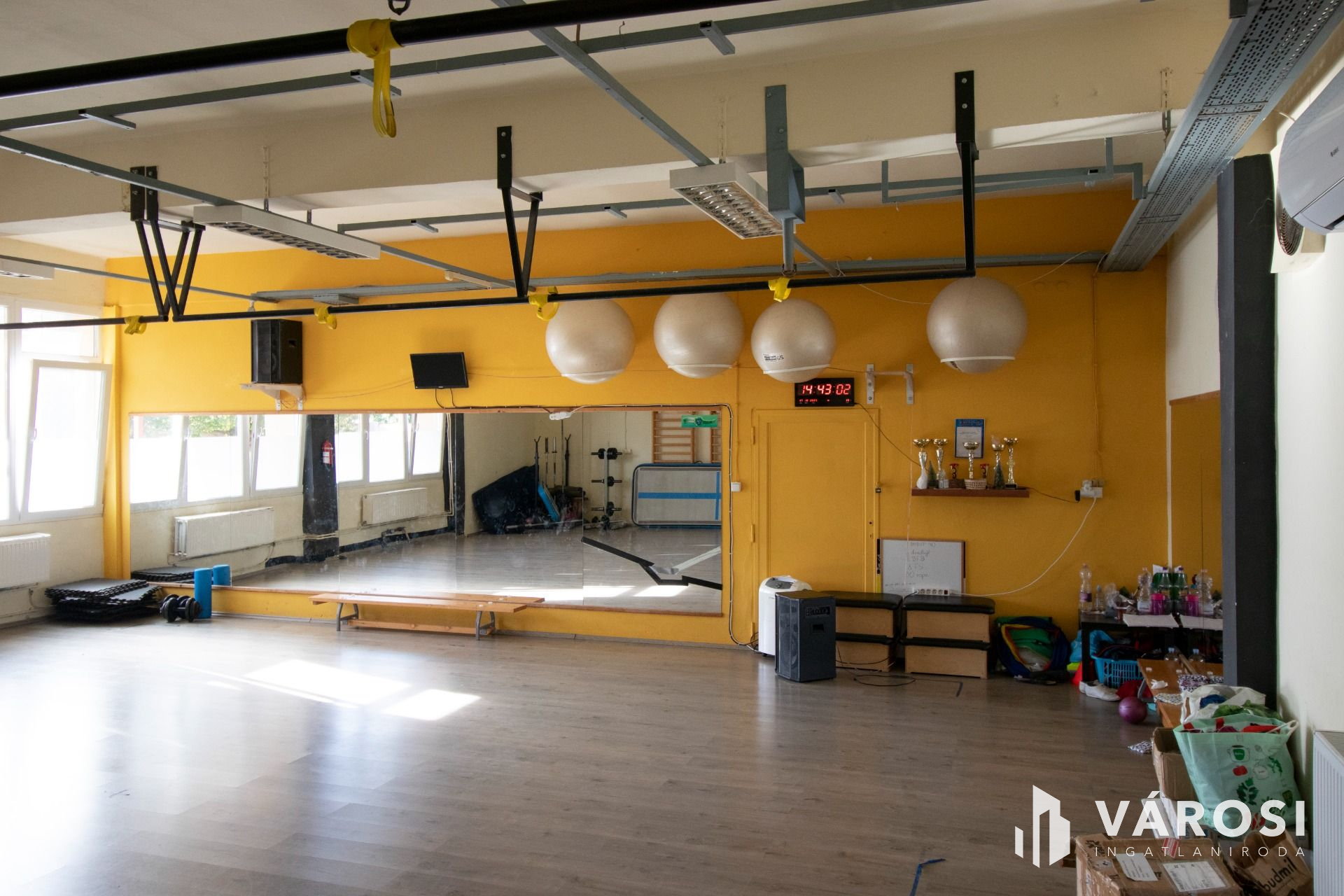 Jelenleg az ingatlan fitness központként üzemel, kialakítása ennek megfelelő. Az épület két szintes, összesen 414 m2-es, földszint+emeletes, lapostetős kialakítású, a két szint fűtése külön gázkazánnal, külön rendszerről, külön gázórával megoldott.