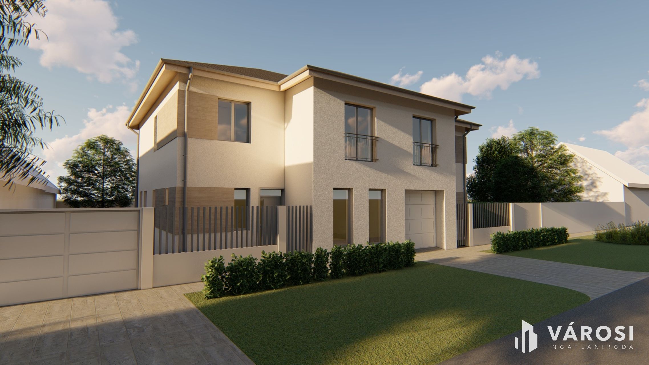 Eladó újépítésű, kulcsrakész kivitelezésű ikerház „Alabástrom” házrésze. Az ikerház a közös fal kivételével, mint két szomszédos ház funkcionál, mindkét rész saját utcafronttal és udvarral rendelkezik.