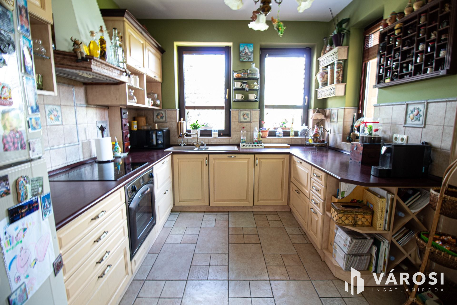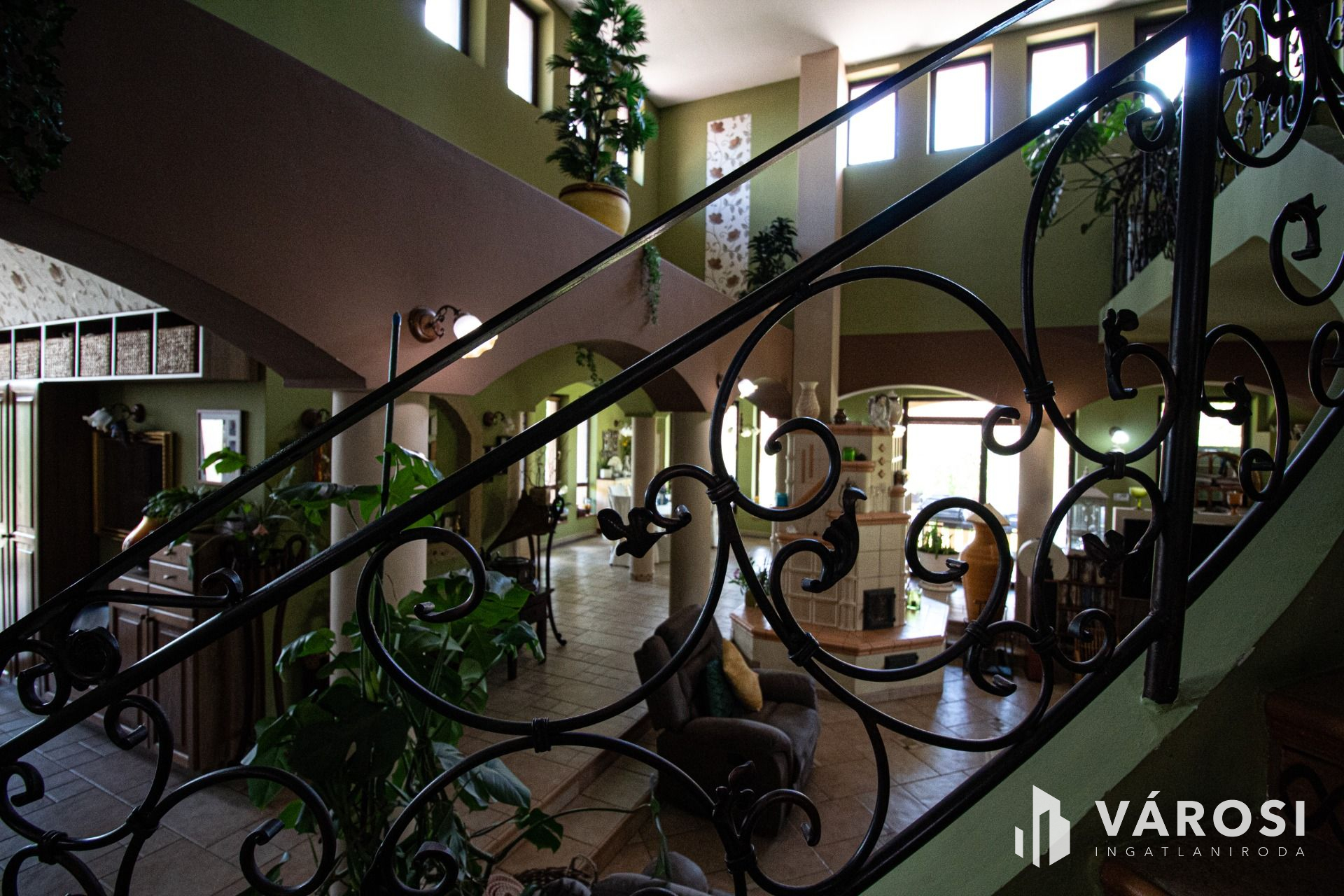 A tulajdonosok a megépítés során minden részletre odafigyeltek és a teljes építkezést felügyelték. A ház 38-as Phorotherm téglából épült, mely nemes vakolattal lett ellátva, a tető pedig Terrán héjazatot kapott. Az ingatlan belső kialakítását nézve a nagy terek dominálnak, hisz minden helyiség a nappaliból belátható. Az ingatlanba belépve egy szép, tágas előszobába érkezünk, mely térből már láthatóvá válik a belső szinteltolás is, ami szintén a mediterrán stílus jelképe. Ezen helyiségből továbbhaladva, tudjuk egy egyedi ívelt lépcsőn megközelíteni a felső szintet, amely 3 külön bejáratú szobából egy külön fürdőből és egy külön mellékhelyiségből áll. Mind 3 szobához teraszkapcsolat tartozik. Az alsó szintre visszatérve, található 2 külön bejáratú szoba, egy nagy légtérrel rendelkező nappali konyha étkező szintén teraszkapcsolatokkal. A ház tájolásának köszönhetően amely kelet-nyugat-dél a nap minden szakában a beltér fényáradatban úszik. A szigetelésről műanyag nyílászárok fa színben gondoskodnak. Az árnyékolást, exotikus gőzölt fa reluxák oldják meg. A meleg nyári napok lehűtésében, több beltéri klíma segédkezik. A hideg téli napok kifűtésében és a meleg víz előállításban, egy nagy teljesítményű cirkó kazán, használati melegvizes tartállyal összekapcsolva, radiátorokon és padlófűtésen keresztül gondoskodik, ezzel szolgálva a bent lakók kényelmét. A nappali hangulatát tovább fokozza, a központilag elhelyezett fa tüzelésű cserépkályha is amelynek melege, a fa ropogása szintén hozzájárul a lakrész téli nyugalmához. A ház belső hangulatát, a teraszra kilépve is érezhetjük, a felfuttatott szőlőnek és a szép igényes kertnek köszönhetően. A terasz adottságai nagyobb családi rendvények, partik megrendezésének tökéletes helyszíne. Gépkocsikkal való parkolás a dupla garázsban megoldott ami kapcsolatban van a belső lakrésszel is. A lakók biztonságára riasztó rendszer vigyáz, mely a nem kívánatos mozgás illetve ajtónyitás esetén azonnal jelez a távfelügyeleti cégnek.