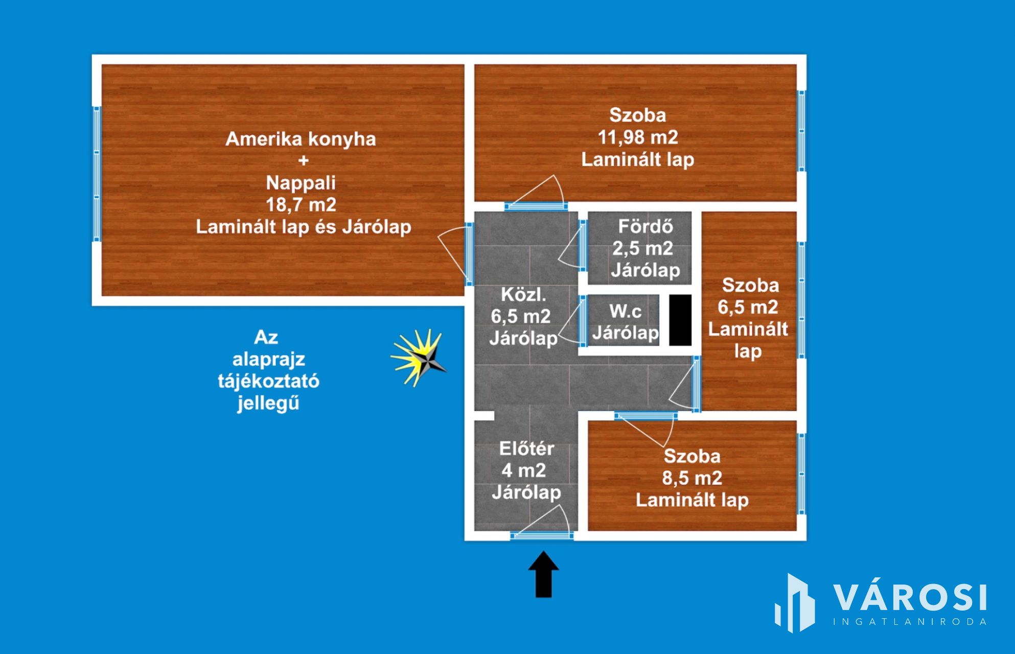 A lakás 1 db amerikai konyhás nappalival, 3 db hálószobával, 1 db fürdőszobával, külön Wc-vel, közlekedővel, előtéttel rendelkezik. Az ingatlan elhelyezkedésre, kialakítása miatt rendkívül sokrétű a felhasználása - akár lakás, vagy befektetési célra -, amely maximálisan kiemeli ezt az ingatlant az átlagos lakások sorából és egyedülálló választássá teszi azt.