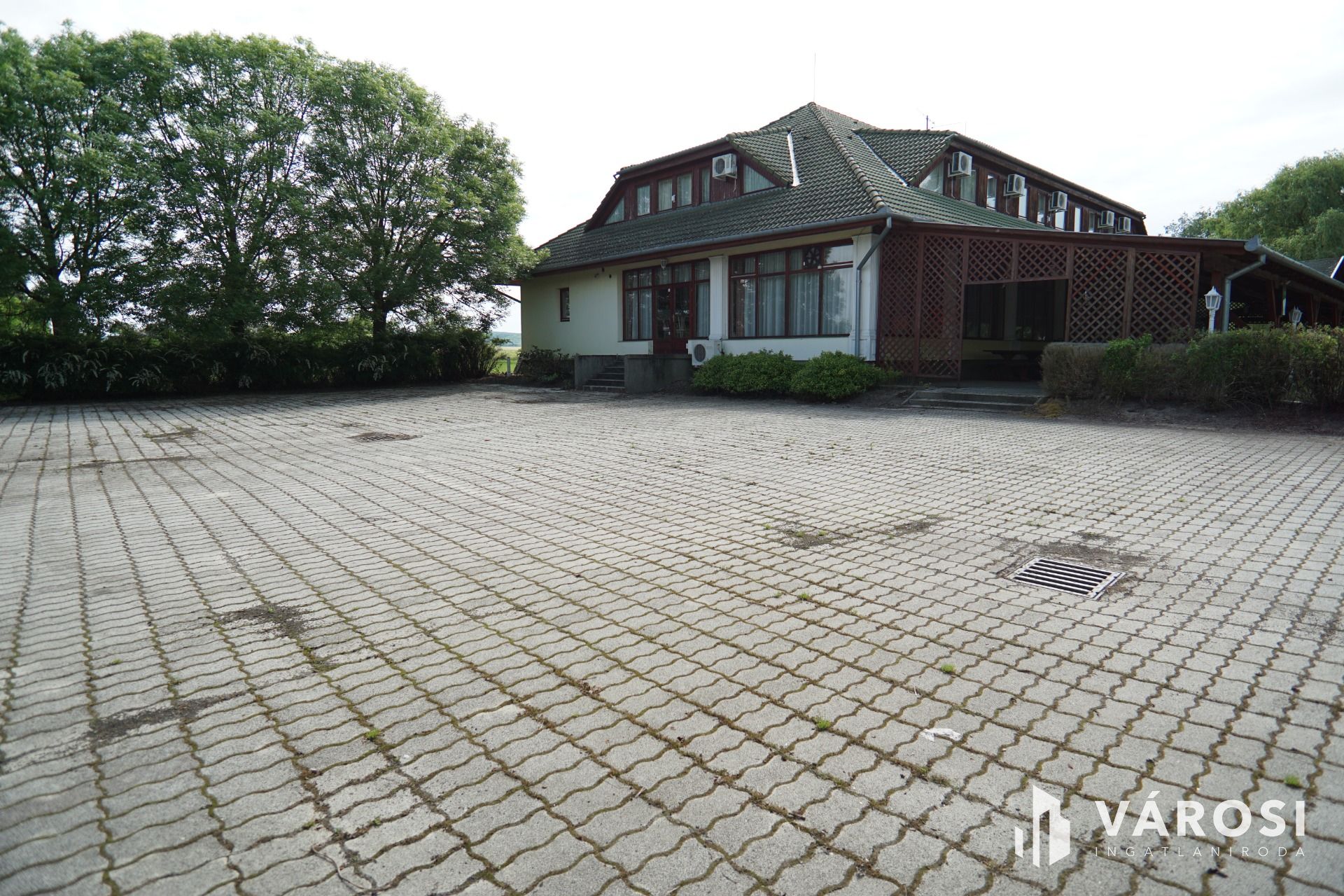 Nagykanizsától pár percre gépkocsival, közvetlen nagy forgalmú fő út szomszédságában vált eladóvá ez a lehetőségekkel teli vendéglátó egység. Funkcionálisan használható kisebb-nagyobb rendezvények lebonyolítására, (lakodalom, születésnapok, céges rendezvények..stb) valamint akár a lokációjának köszönhetően melegkonyhás étteremként és panzióként is üzemeltethető. Étterem rész befogadó képesége 180 fő, a terasz pedig további 100 fő vendég leültetésére alkalmas. A felső szinten található szobák pedig maximum 30 fő ott alvására lett kialakítva. Maga az épület beton alappal, tégla falazattal, cserép tetőfedéssel került megépítésre a 2000-es évben. Az ingatlanhoz érve léphetünk be egy közel 170m2-es fedett teraszra, ahonnan a főbejárati ajtón áthaladva érkezünk az épület központi részébe, mely 251m2-es nagyságának köszönhetően akár étterem akár rendezvényteremként is használható. Ezen légtérből megközelíthető meg a felső szint is ahol 10 külön bejáratú szoba saját vizesblokkal került kialakításra, valamint még ezen szinten háztartási helység és iroda is megtalálható. Az ingatlan teljesen klimatizált. (alsó szint, felső szint minden szoba külön-külön). Az alsó szintre visszatérve található még egy női és egy férfi illemhelység, egy nagy konyha a hozzá tartozó helységekkel és tárólokkal, hűtőházzal, személyzeti öltözővel. Az éttermi részen a dolgozok munkáját segíti, egy igényes nagy italpultrendszer is melyhez kis ablakon keresztük konyhakapcsolat is tartozik. Az ingatlan fűtése egyedi gáz cirkó, mely radiátorok és padlófűtésen keresztül szolgáltatja a meleget.