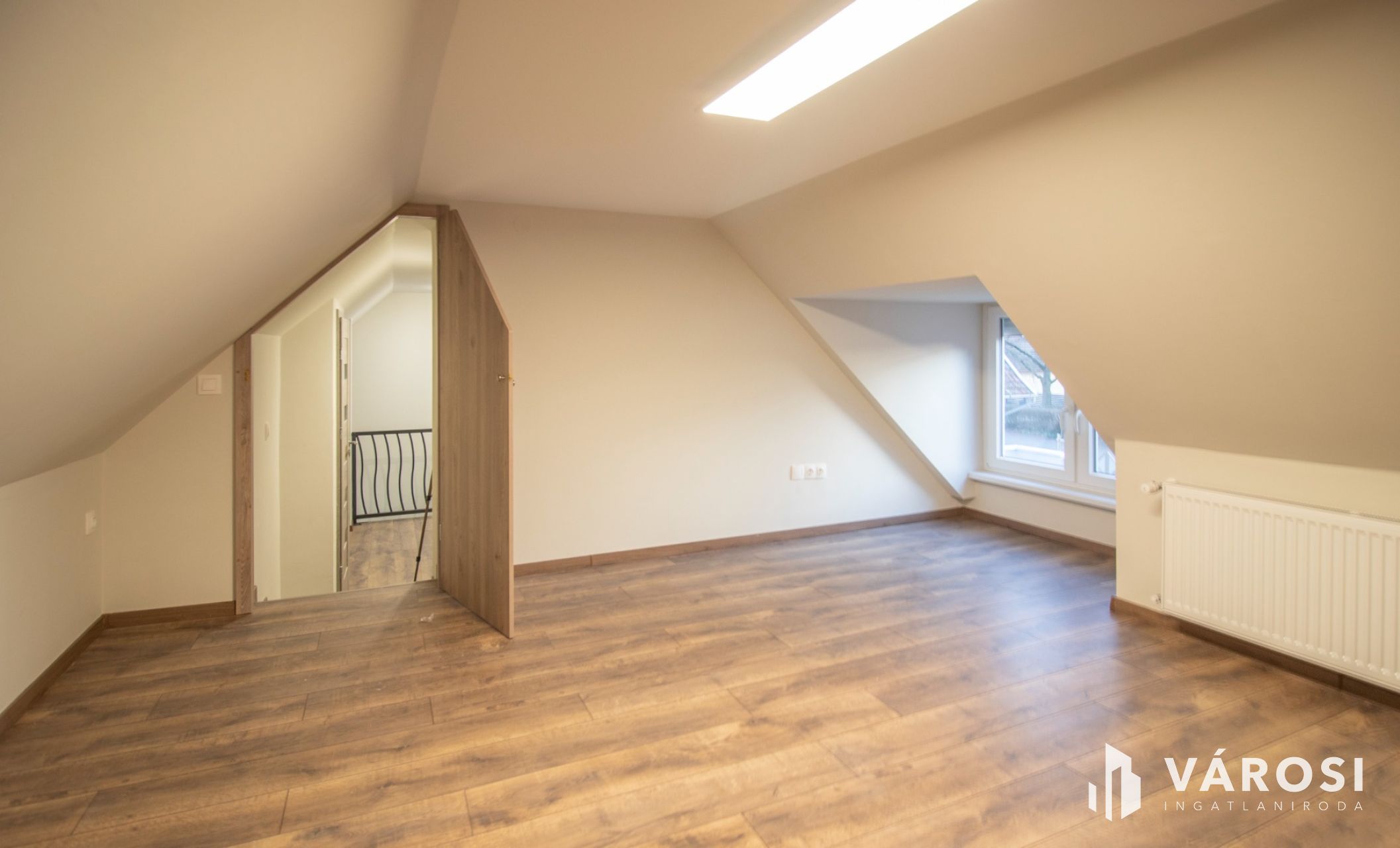 Az épület tetőtere 46 m2 hasznos területű, három hálószoba, egy fürdőszoba, szárítóhelyiség/mosókonyha került kialakításra.