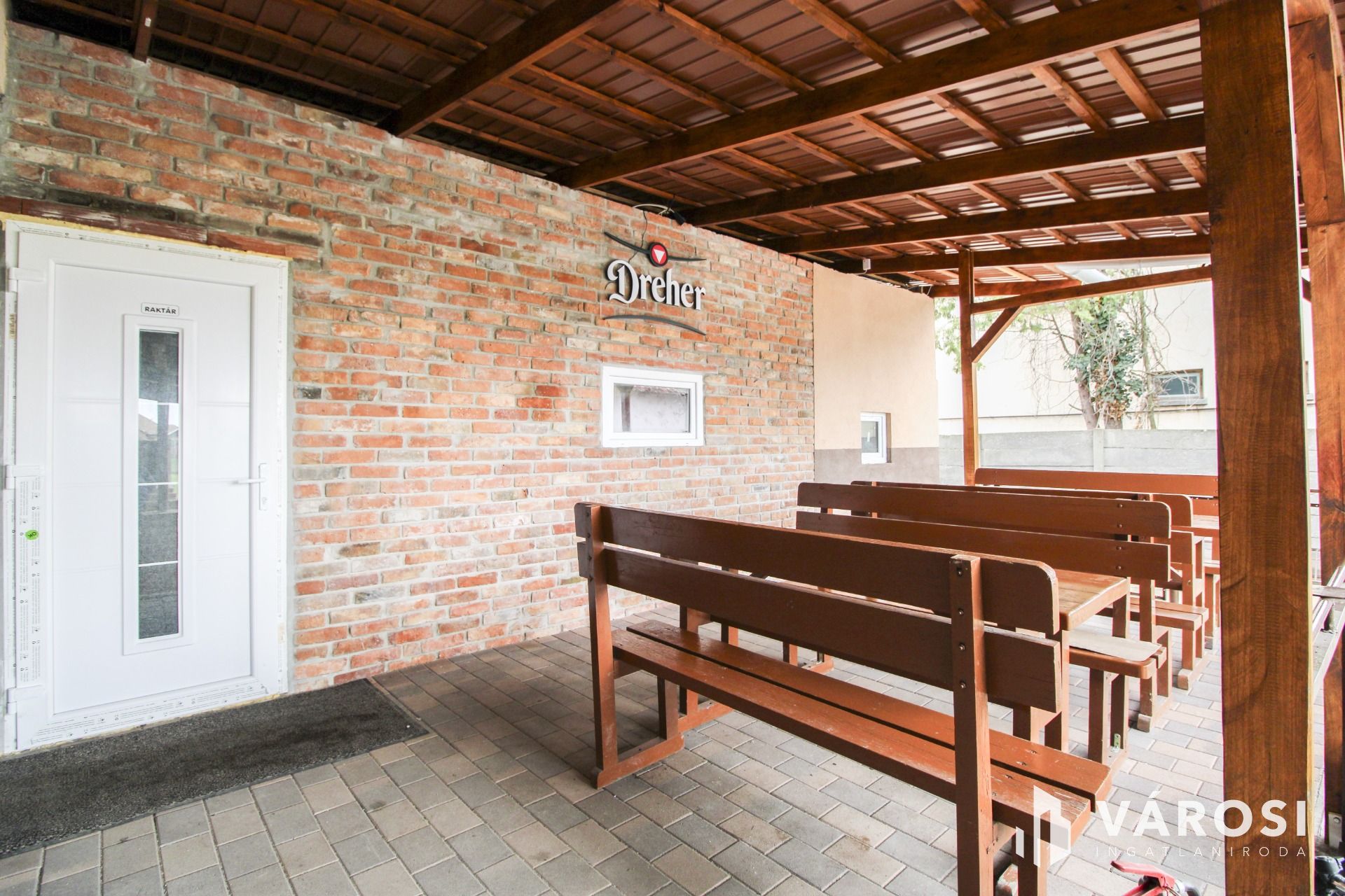 Az udvarban egy tágas, 55 négyzetméteres fedett terasz, több tárolóhelyiség, raktárak is helyet kaptak.